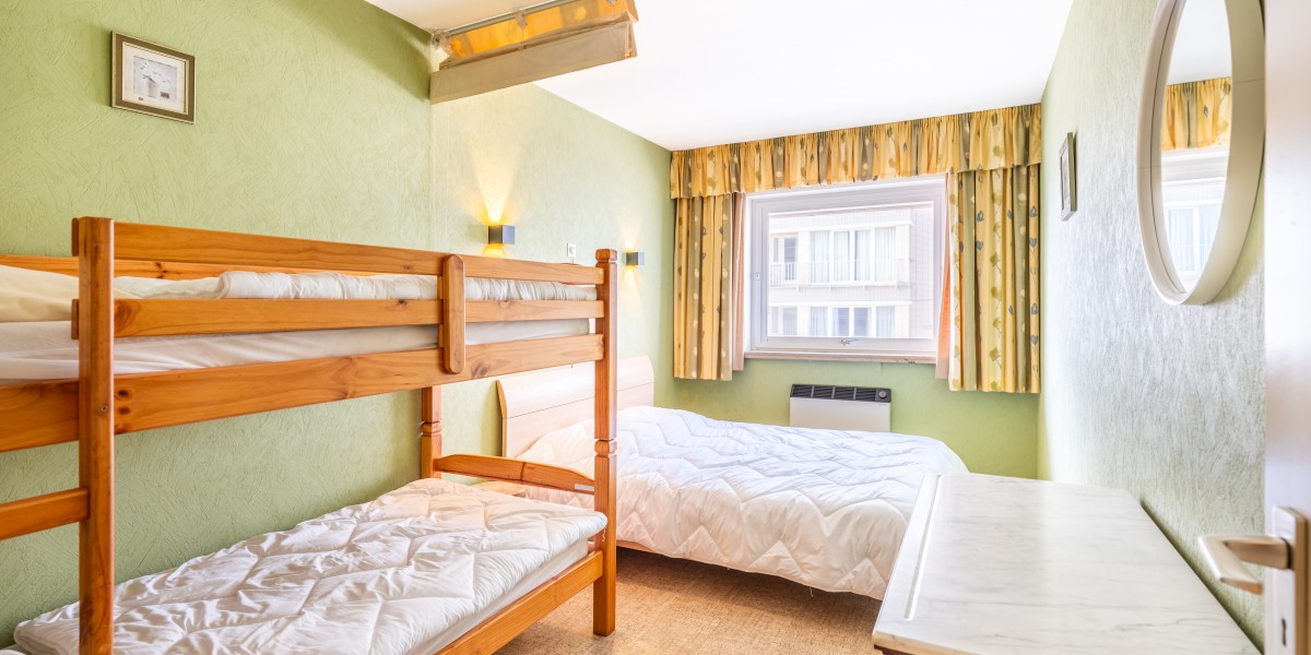 Hall, toilet, living room with side sea view, balcony, separate fitted kitchen, bathroom with bath, 1 large bedroom with 1 double bed and 1 bunk bed.