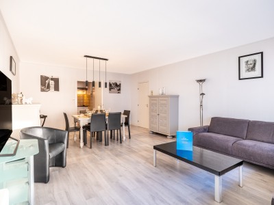 This cozy one bedroom apartment on the first floor (elevator), with side sea view, is situated a stone's throw from the beach. Within walking distance of shops and restaurants. The apartment has a spacious living room, separate kitchen. Well maintained and cared for. Furnished in a mixed style. Pets are allowed.