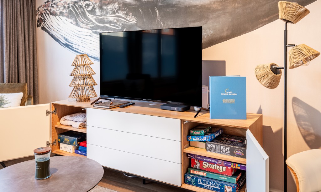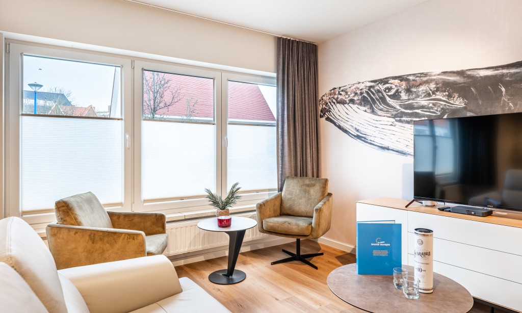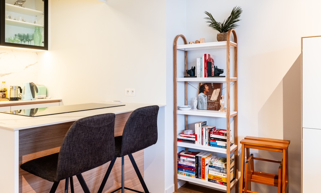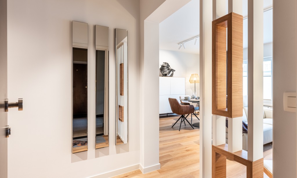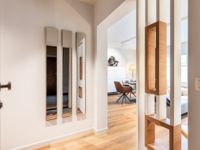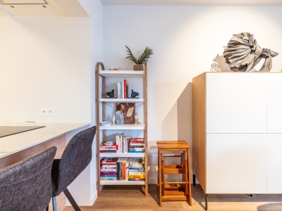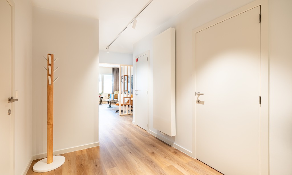 For more privacy, the apartment is equipped with electric shutters, curtains, and Luxaflex.