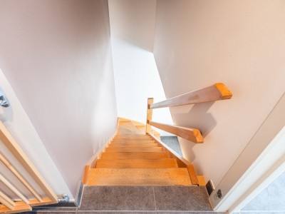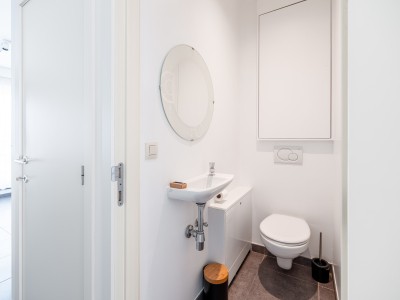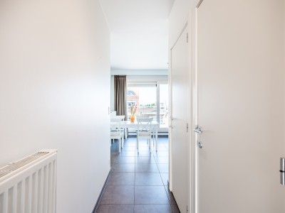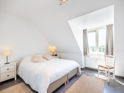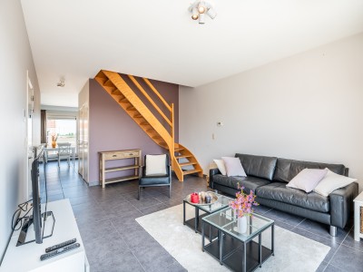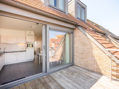On the 4th floor, there is the hall, toilet, separate well-equipped kitchen with dining table and access to the terrace on the Zeelaan side (sun in the morning), the living room with corner sofa and access to the 2nd terrace (sun in the afternoon). There is also a storage room with a washing machine and dryer. In the living room, the stairs take you to the upper floor.