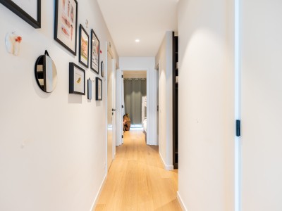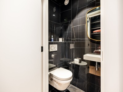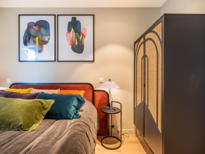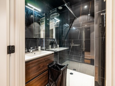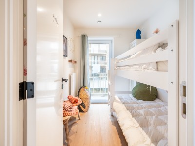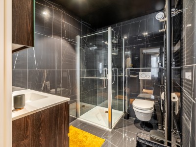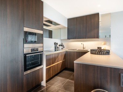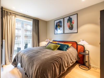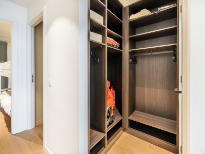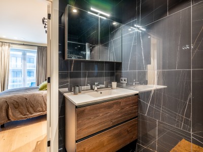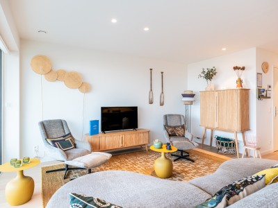 This spacious flat consists of a hall with a large dressing/cloakroom; spacious living room with high-end furniture, large corner sofa, table and chairs; open kitchen with dishwasher, oven, microwave, fridge with 2 freezer drawers; bathroom with Italian shower, separate toilet; 2 bedrooms with 1 double bed, one of which has its own shower room with toilet, 1 bedroom with 1 bunk bed. Balcony to front and rear.