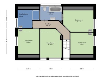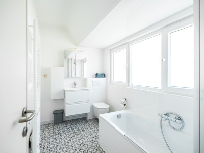 1st floor: 2 large bedrooms each with 2 single beds each, 1 bedroom with double bed, 1 bedroom with a double bed and single bed. Washbasin in 3 bedrooms. Bathroom with bathtub, washbasin and toilet. And after 01/02/2025 a second shower room.