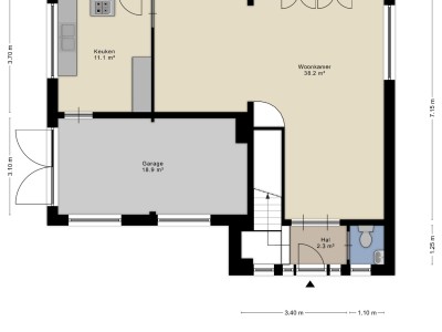 Ground floor: hall with toilet, sunny living room and dining area with access to the beautiful terrace overlooking the garden, separate kitchen, garage.