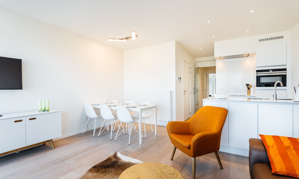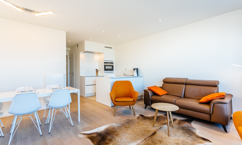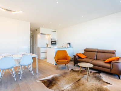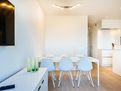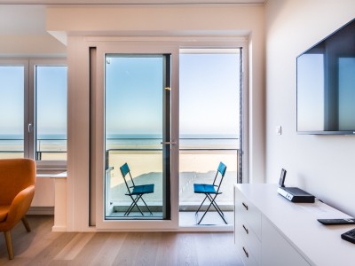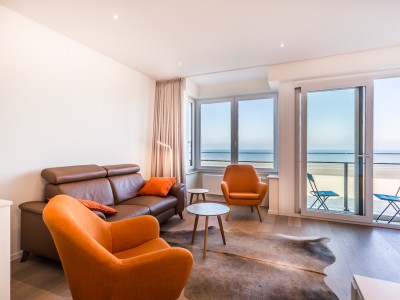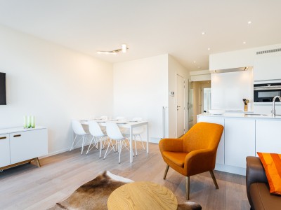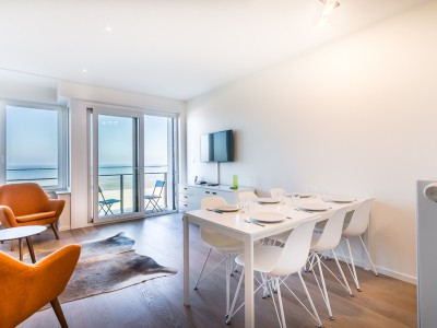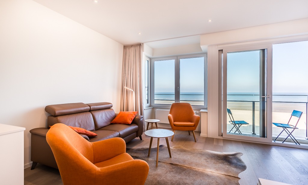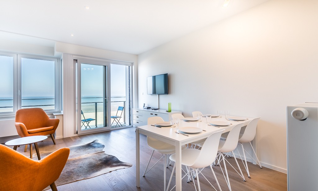 Modern luxury apartment on the seafront, near the dunes, on the 4th floor with an elevator. Spacious living room with frontal sea view. Fully equipped, modern style. No pets allowed.