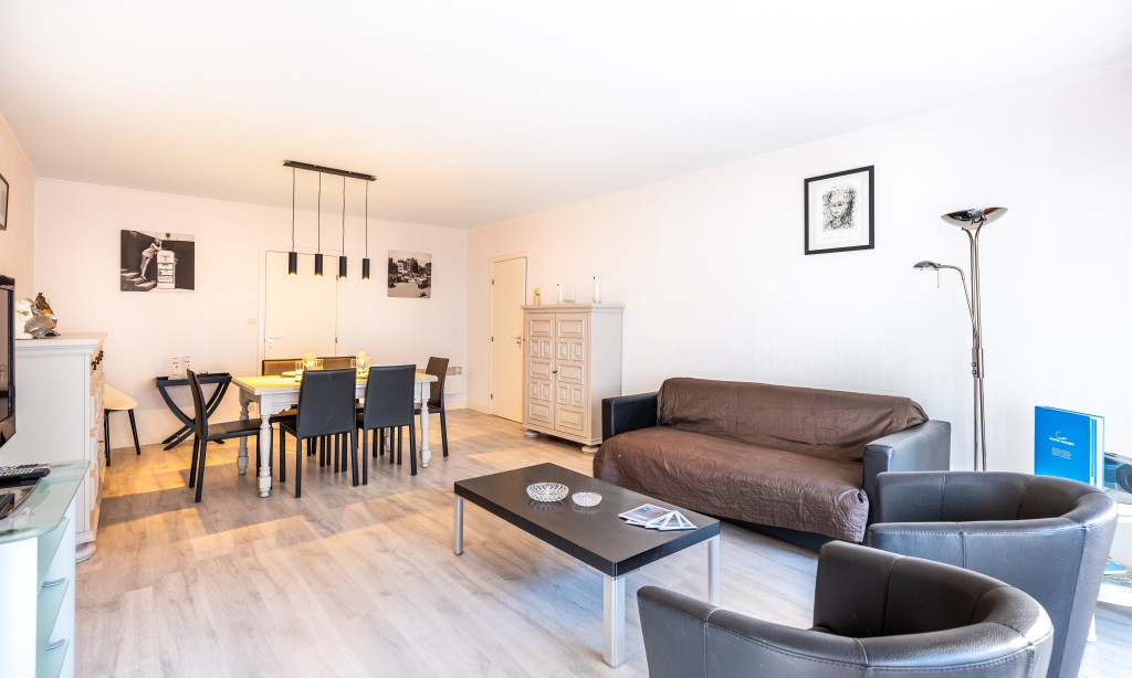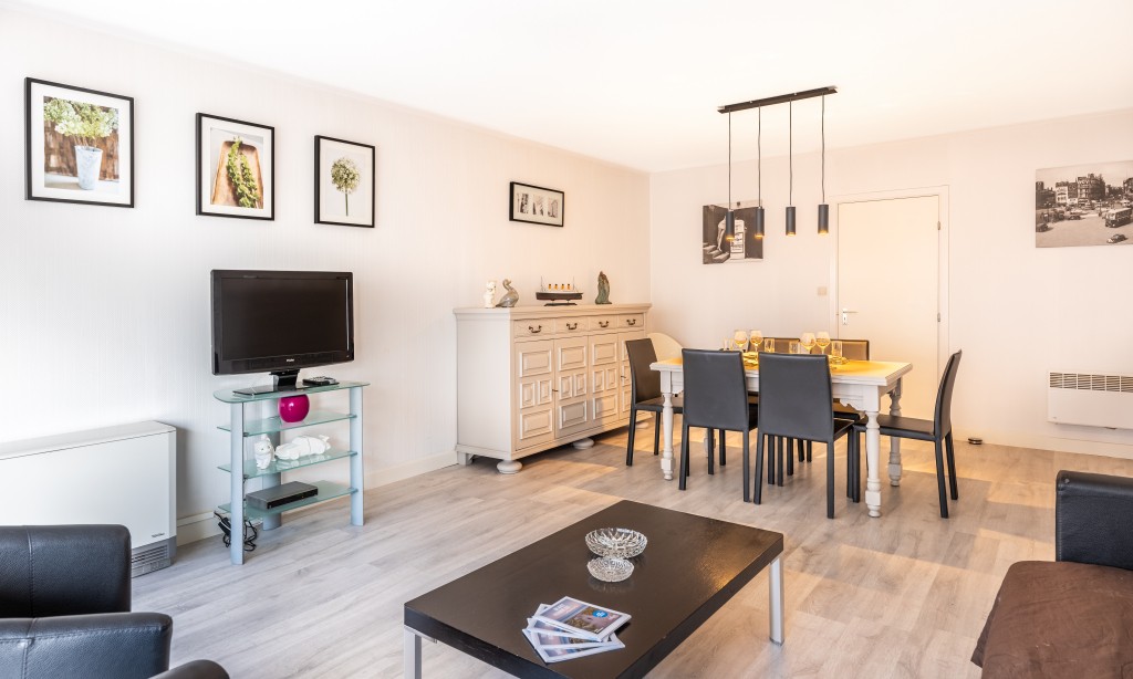This cozy one bedroom apartment on the first floor (elevator), with side sea view, is situated a stone's throw from the beach. Within walking distance of shops and restaurants. The apartment has a spacious living room, separate kitchen. Well maintained and cared for. Furnished in a mixed style. Pets are allowed.