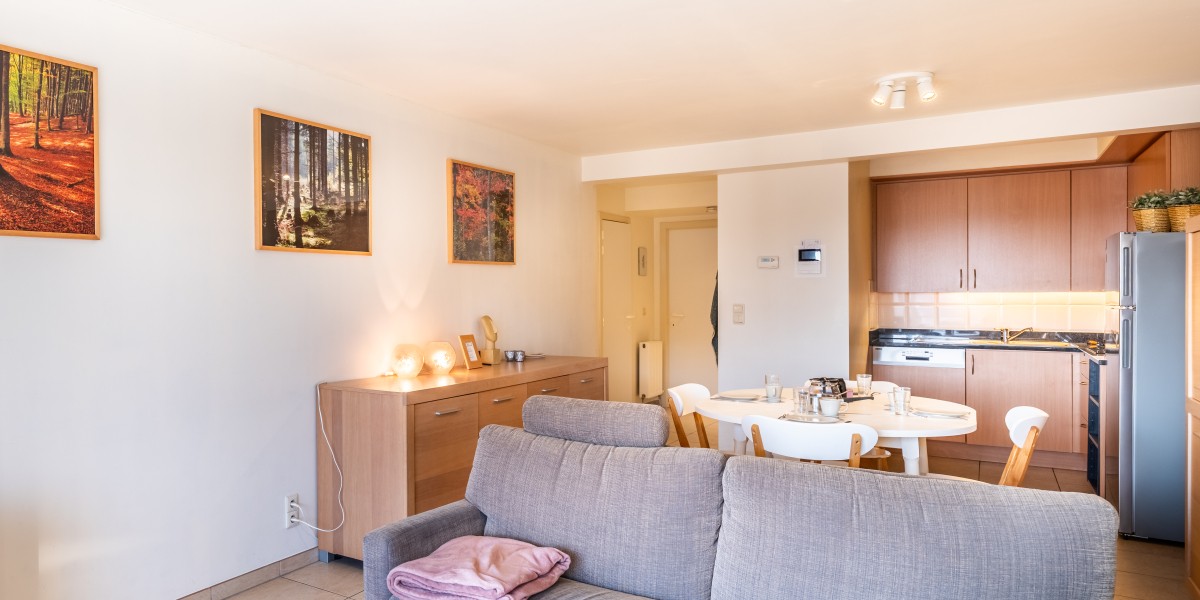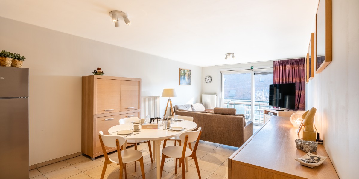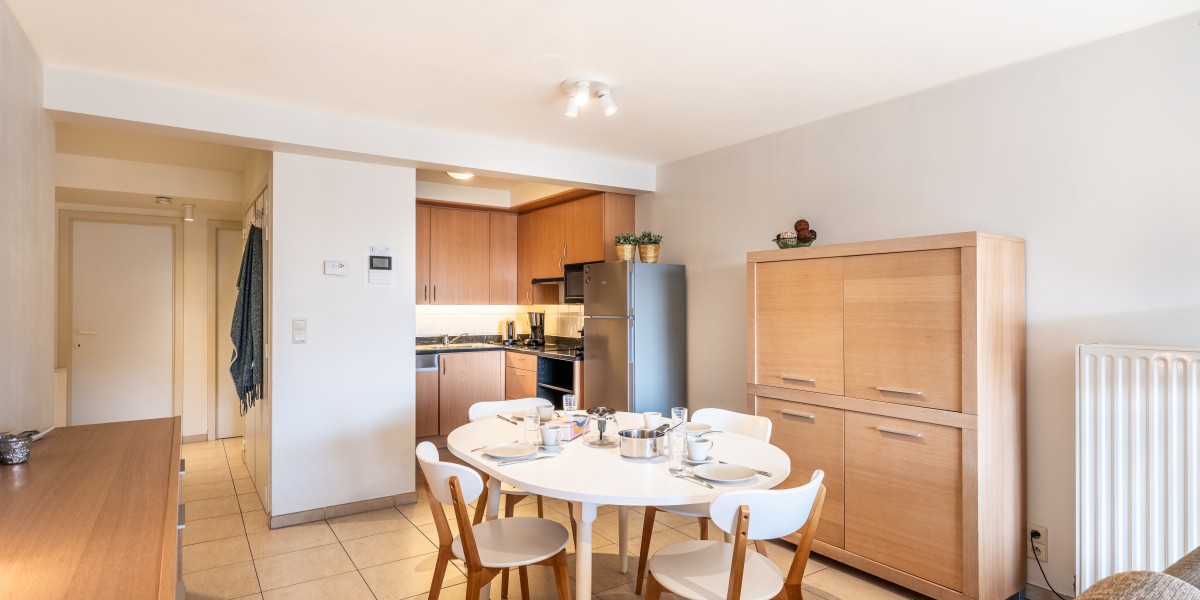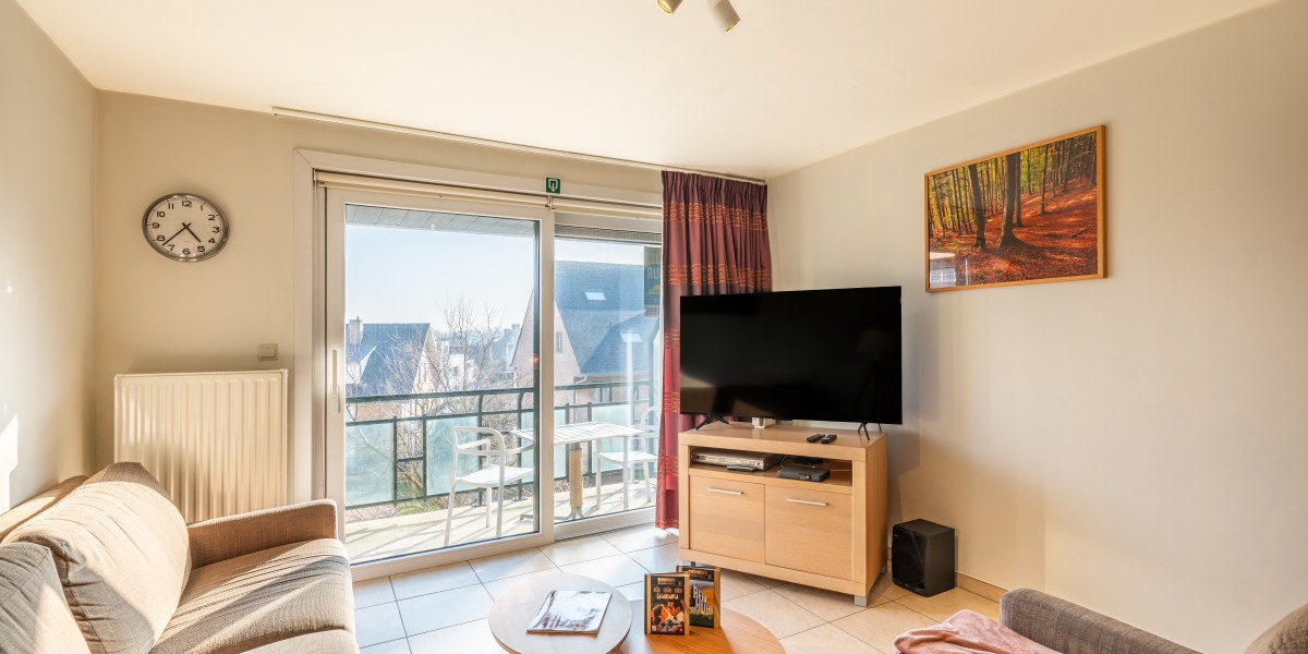 The apartment consists of a hall, toilet, bathroom with bath, bedroom with double bed, Bedroom with 2 single beds and a bunk bed, kitchen with dishwasher and microwave, sunny living room with balcony (small sea view).