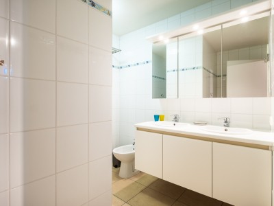 The apartment consists of a hall, a spacious living room with fully equipped kitchen, storage room, bathroom, two shower rooms, 2 bedrooms with double beds and one bedroom with a bunk bed.