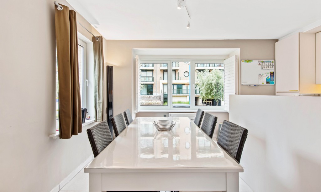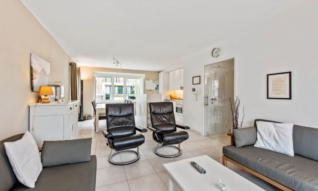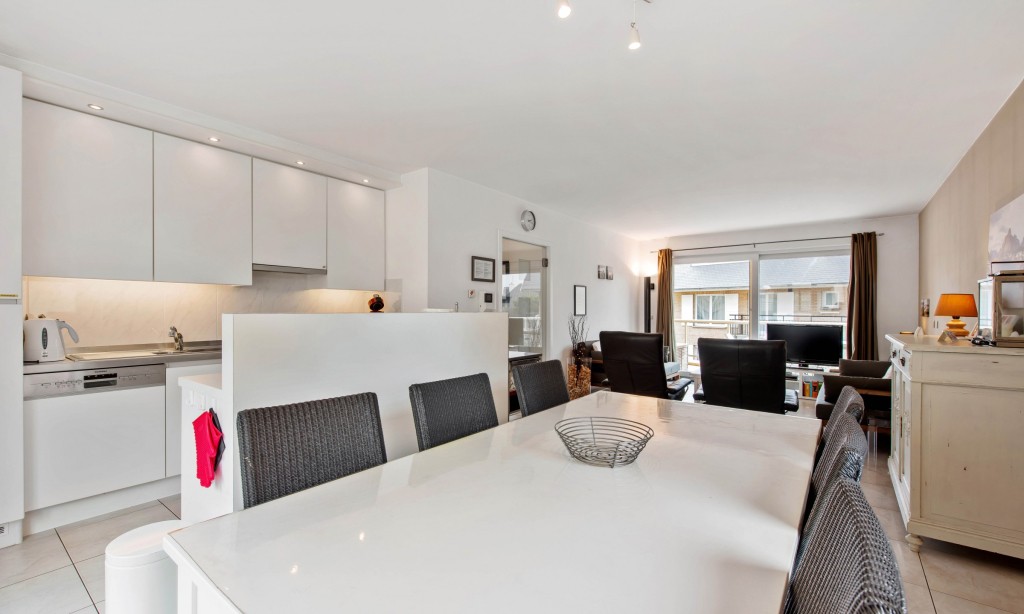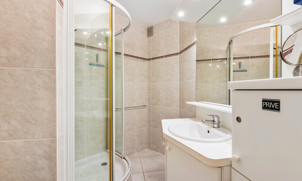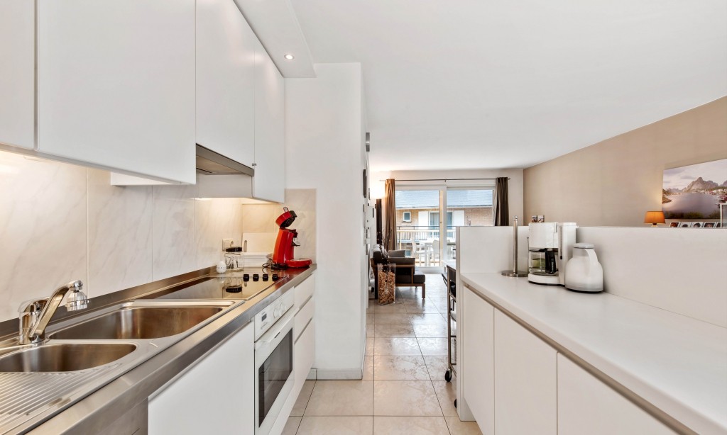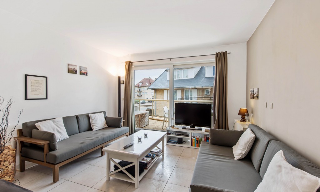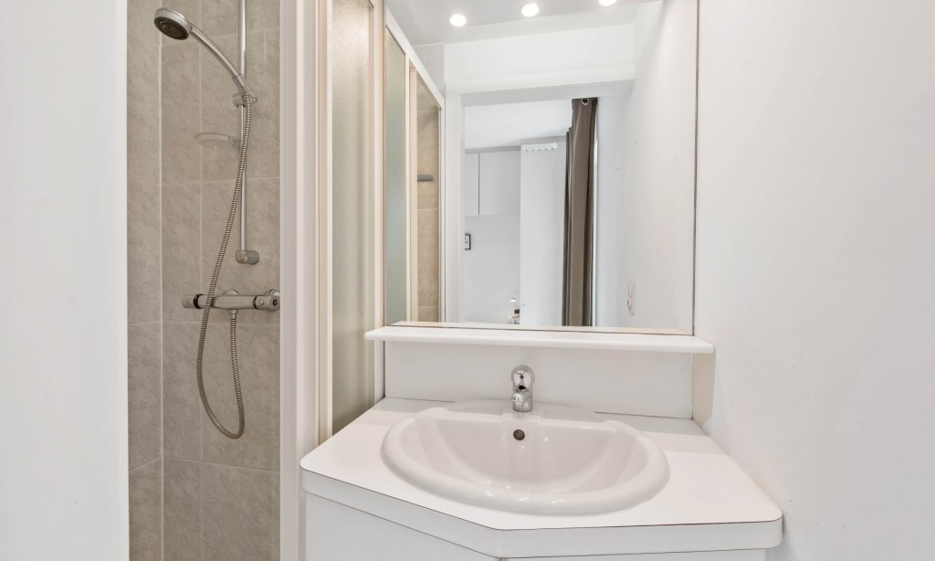 Living room with open kitchen and large sunny terrace. Two double bedrooms (one with own shower). Bathroom with shower. Washing machine.