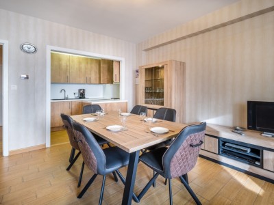Hall, living room with sea view, separate kitchen, bathroom with bath, toilet, 2 bedrooms with double bed and bedroom with bunkbed and pull out bed for 1 pers.