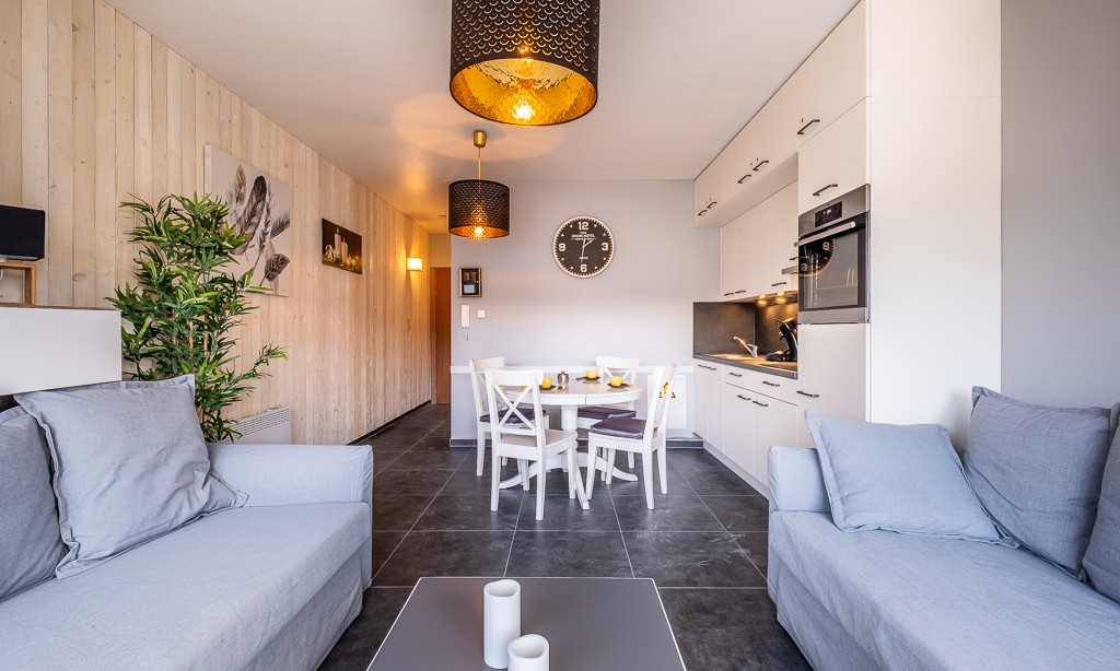 The apartment has a spacious living/dining room with a fully equipped kitchen with all the trimmings. Bathroom with shower, toilet, two double sofa beds in the living room.