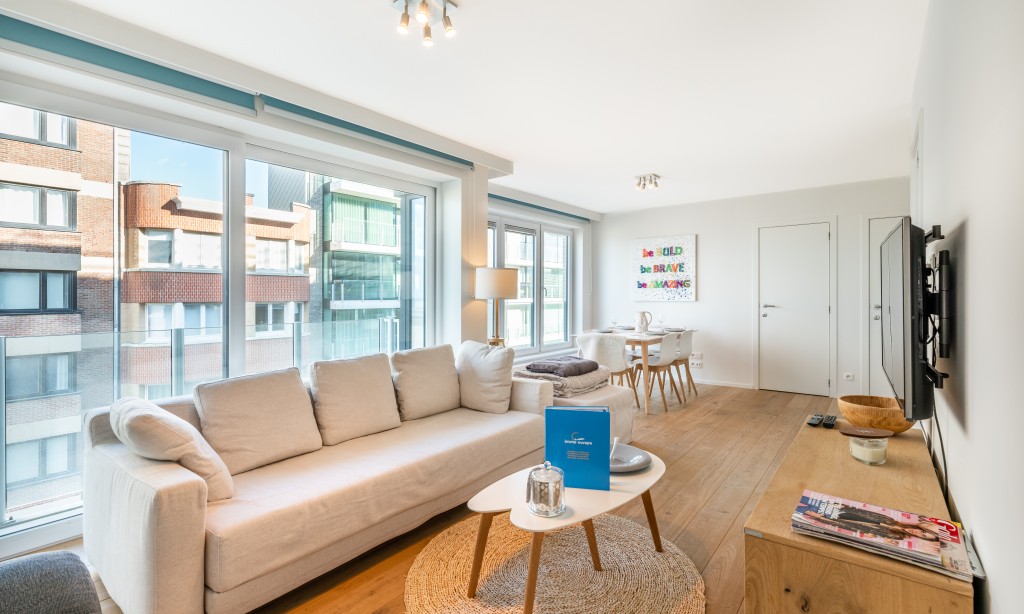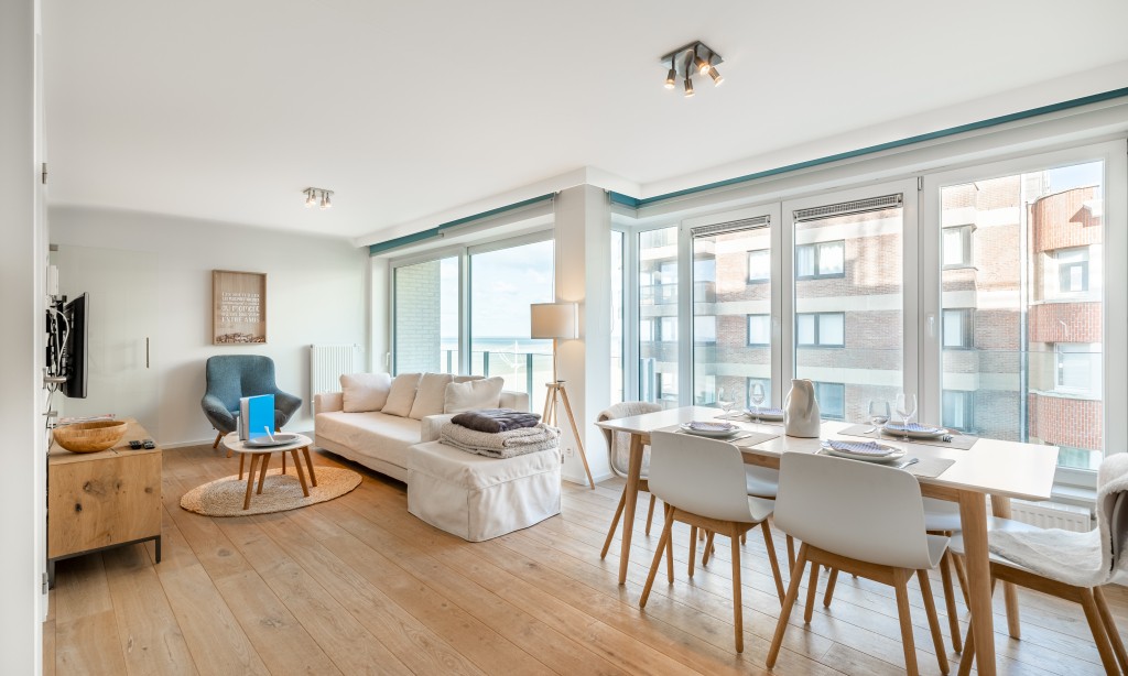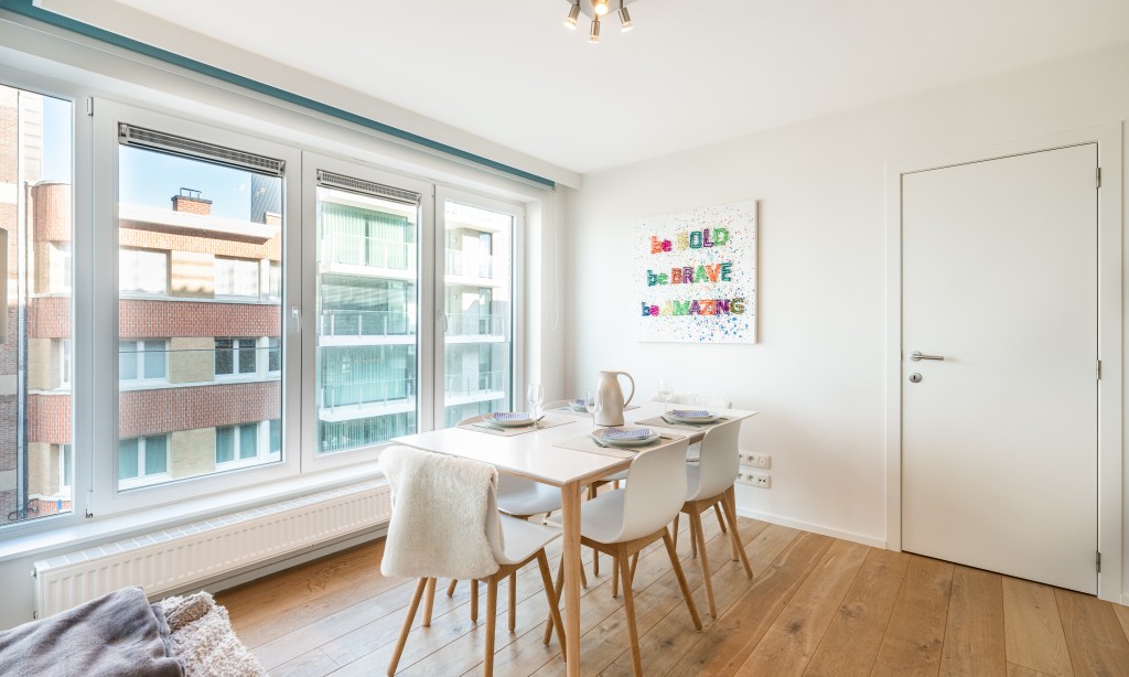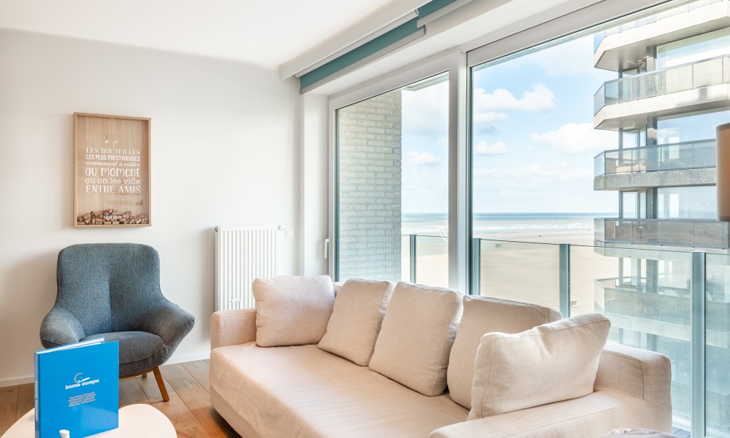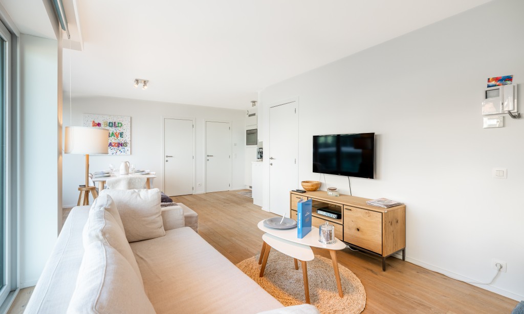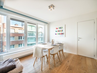 Very nice flat in a recent residence with 2 bedrooms and side sea view. The flat is located on the 3rd floor with lift, modern and equipped with all comfort and a fully equipped kitchen. The flat is located in the centre of Koksijde on the corner of the dike and a street perpendicular to the sea.