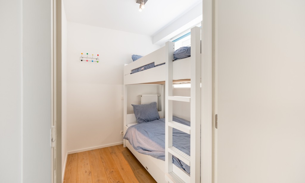 Flat with hall, storage room, living room with sea view, fully equipped and open kitchen, bedroom with double bed, bedroom with bunk bed, bathroom with bathtub, separate toilet from the bathroom.