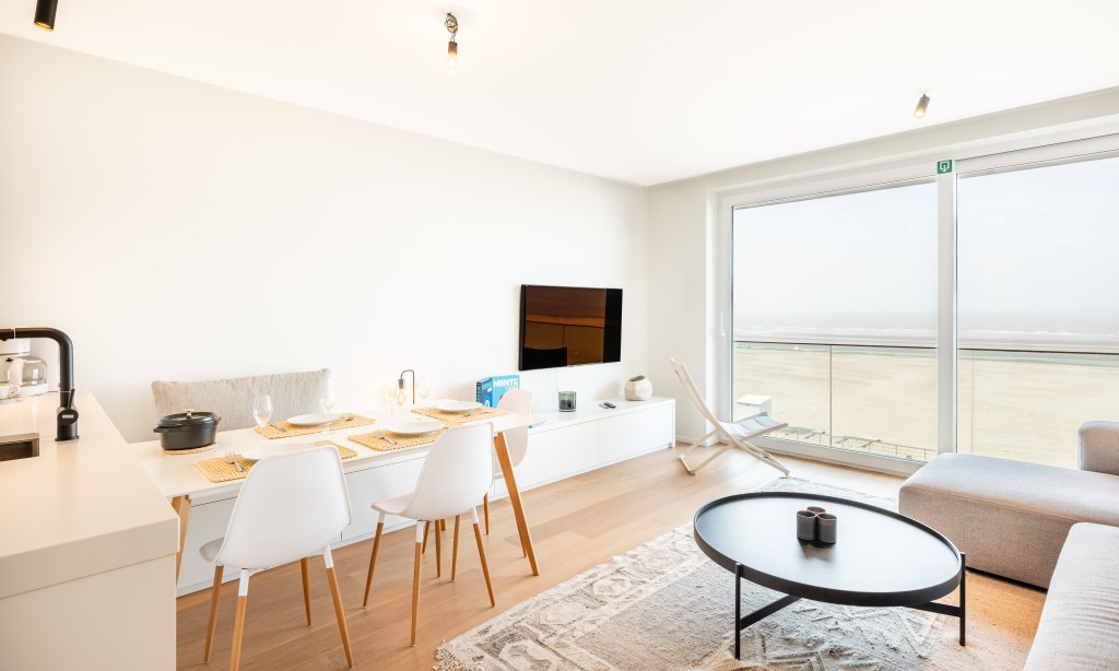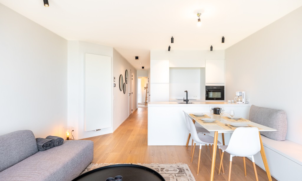 Modern luxury newly built flat on the Zeedijk with 2 bedrooms on the second floor with lift. Spacious living room with frontal sea view. Furnished in modern style and equipped with all comforts.