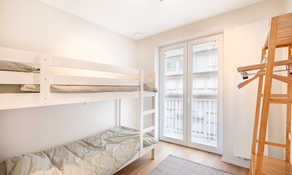 Bedrooms: double bed (180x200), bunk bed (2 x 90x200), all beds with box spring, 2 single duvets (140x200), double duvet (220x200)