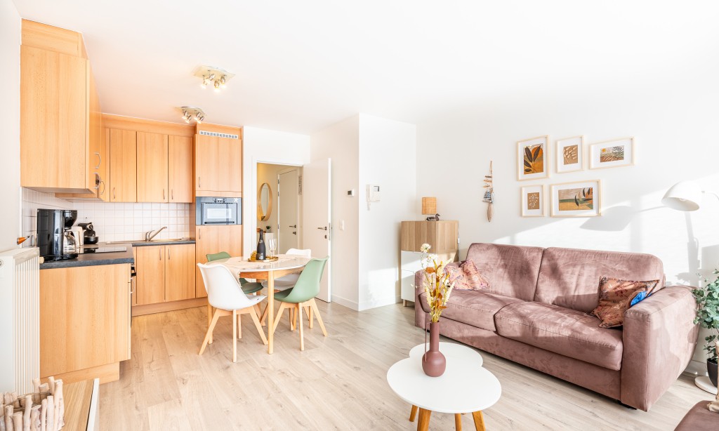 Sunny, modern and very well-kept flat a few steps from the sea and the dunes. Ideally located for both couples and a family with child(ren). Walking distance from the centre with shops and restaurants. Public transport (coastal tram) at 150m.