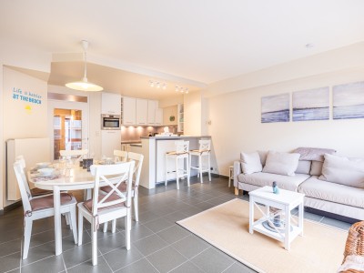Cosy and sunny two-room flat with side sea view in the centre of St-Idesbald. Perfect location for a stay with children. No need to cross the street with the tram to go to the sea. The supermarket, bakers, butchers, fishmongers and restaurants are a stone's throw from the flat.