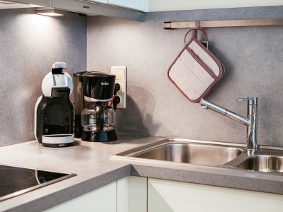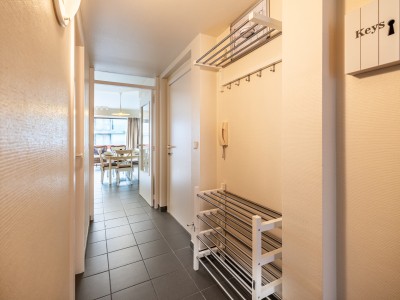 Through the entrance hall you enter the sunny and cosy living room with access to a balcony with sea view, open fitted kitchen with electric hob, combi microwave, dishwasher, fridge with freezer compartment. The bathroom has a bathtub with shower enclosure and two washbasins. The toilet is separate from the bathroom. At the back are the 2 bedrooms, one bedroom with double bed and one bedroom with bunk beds.