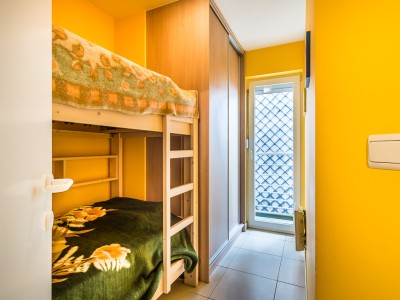 The apartment consists of a living room with sea view, open kitchen, shower room, 1 camber with 1 bed 2 pers., 1 bedroom with 1 bunk bed, sofa bed 2 pers. in the living room.