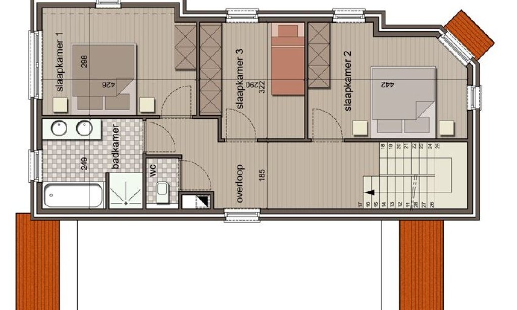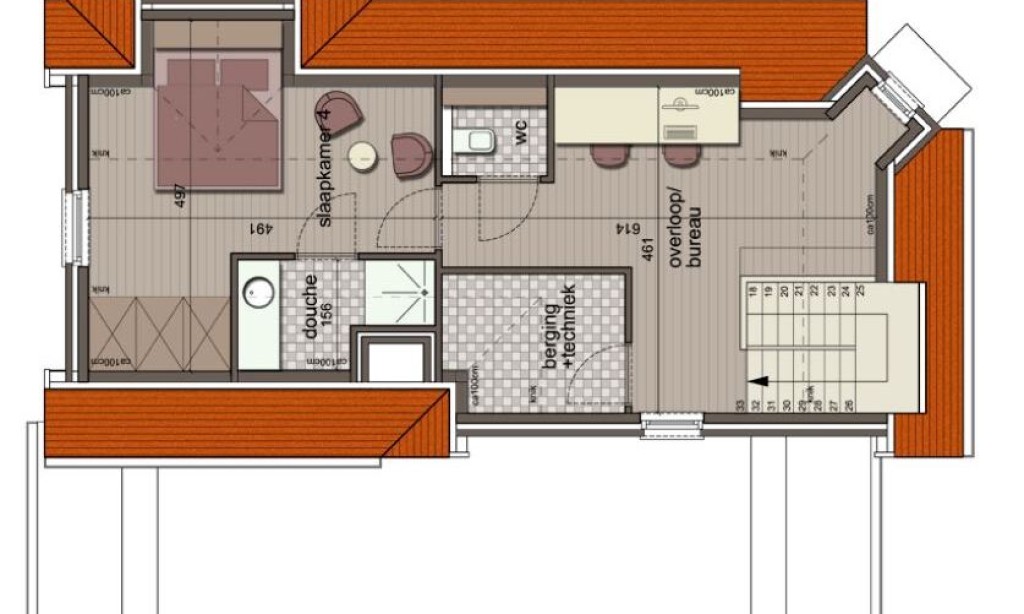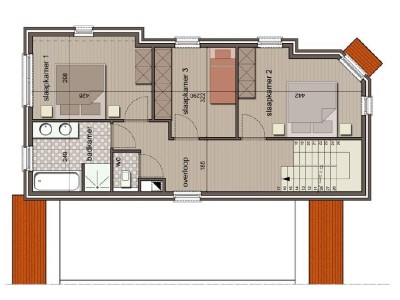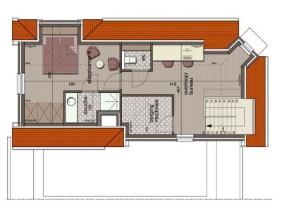 2nd floor: night hall with separate toilet, large office area with wifi connection and ethernet connection (UTP) for students or teleworkers, 1 bedroom with double bed and double duvet. This room has its own bathroom with washbasin and shower.