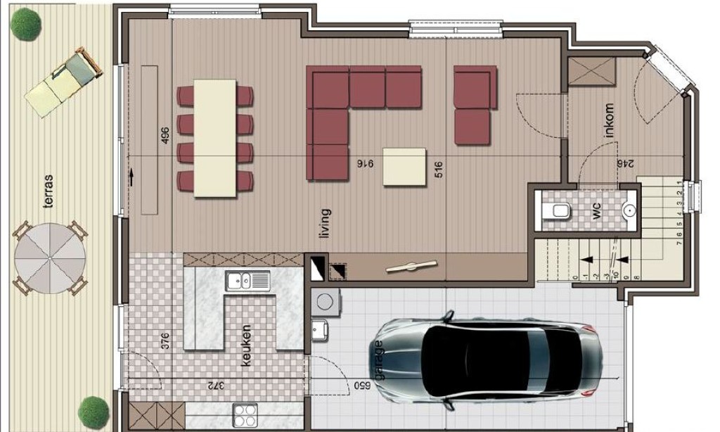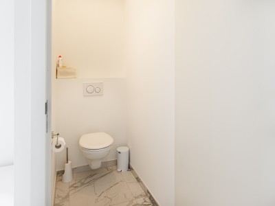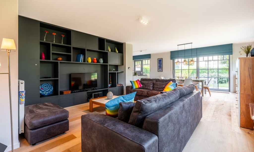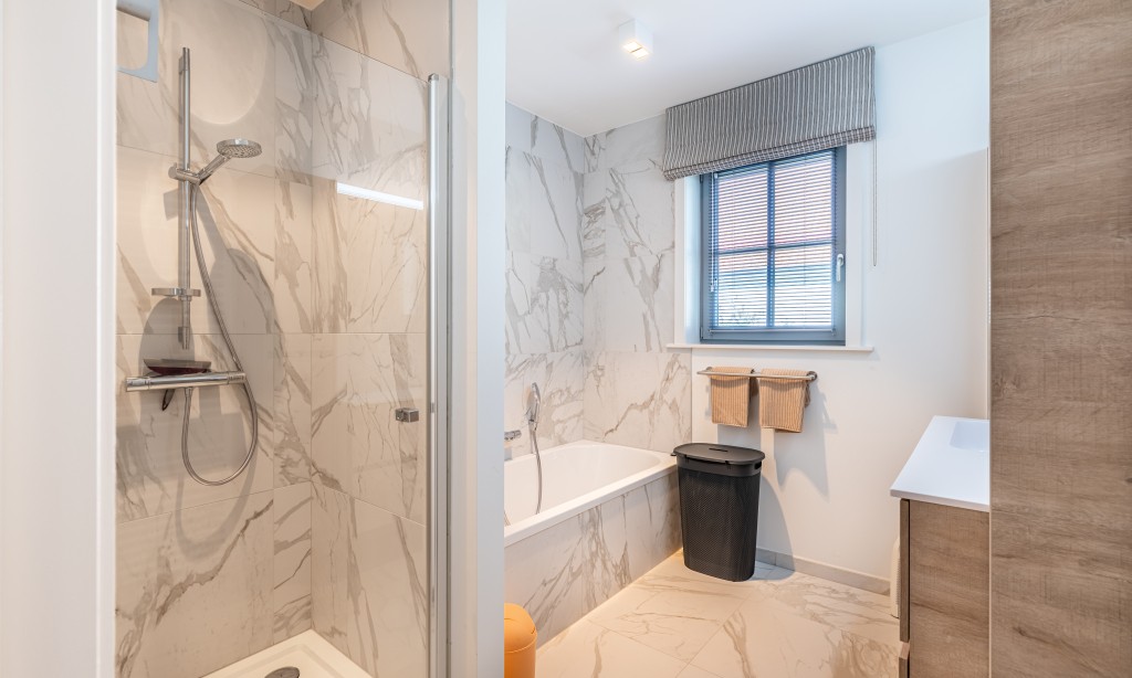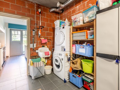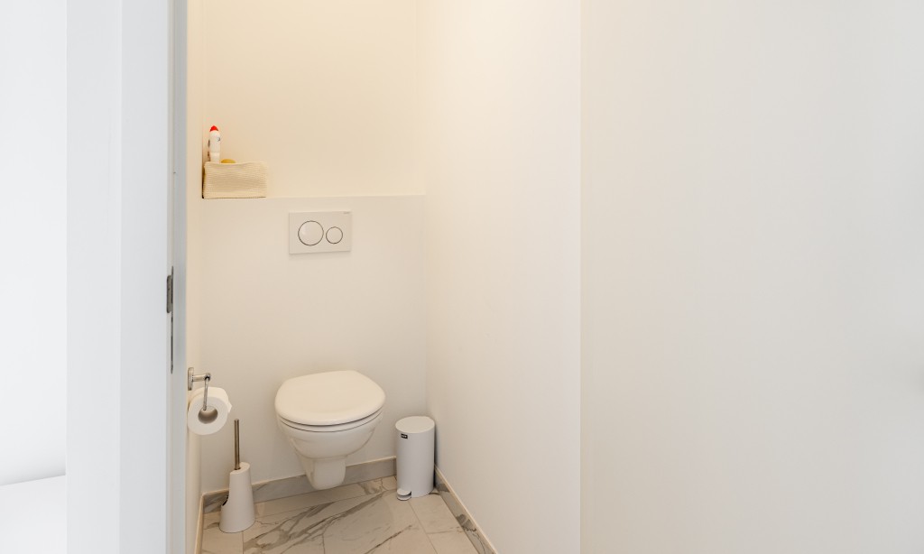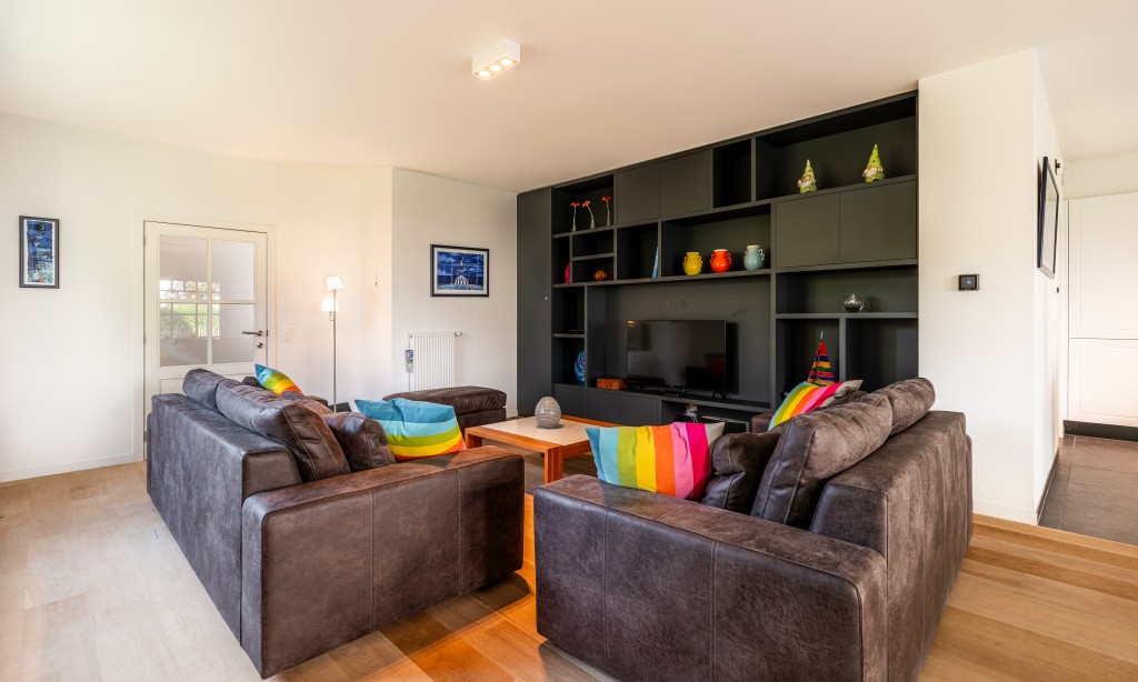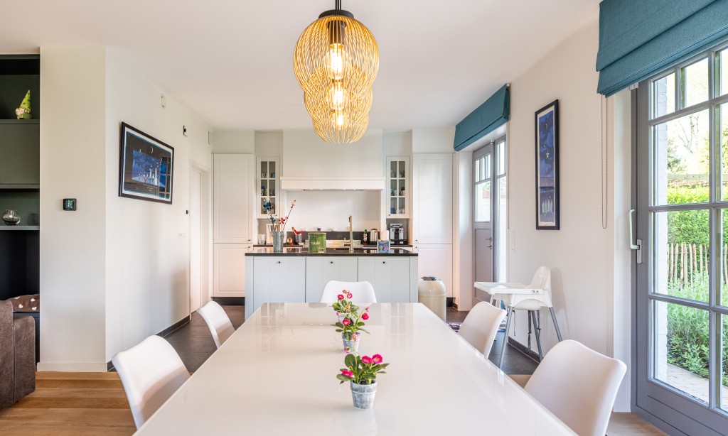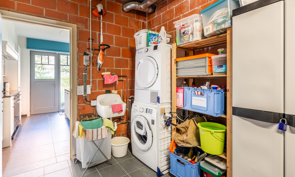 Ground floor: entrance hall, toilet, modern living/dining room, fully equipped open kitchen (dishwasher, oven, microwave, fridge with 3 separate freezer drawers), access to the enclosed garden and the comfortable terrace just off the kitchen. Living room with 2 large, comfortable sofas, flat-screen smart TV and wifi connection (Proximus). Access to your own streaming services such as Netflix, Disney, etc. The garage serves as a large storage room. It houses the washing machine, tumble dryer, tumble dryer and table tennis table.