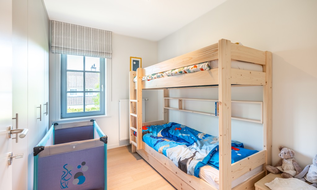 1st floor: landing with separate toilet, bathroom with washbasin, bath and shower, 1 bedroom with bunk beds and trundle bed (3 single duvets), 2nd bedroom with double bed and double duvet, 3rd bedroom with double bed and double duvet.