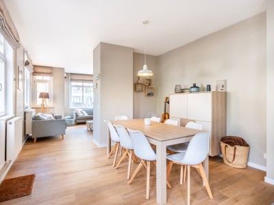 From the kitchen, you have access to the terrace (garden furniture in the garage). You can park one car on the ramp (slope) in front of the garage and one car in front of the living room.