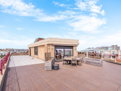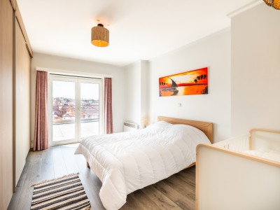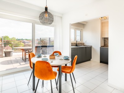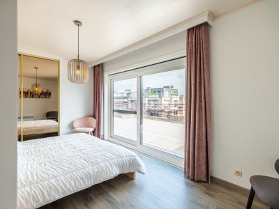 Stylish, spacious 3-bedroom penthouse in the centre of Koksijde, 500 m from the sea and very close to the shops. This recently renovated penthouse apartment is located on the top floor and has a large terrace surrounding the entire apartment. A luxurious stay by the sea with a large family is guaranteed here.