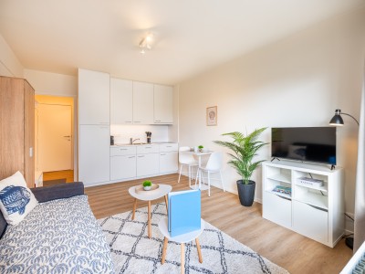 Close to the sea and shops, just 700 metres from the beach/7 minutes' walk, within easy reach of shops and restaurants, yet in a quiet location: this studio offers the best of both worlds. Ideal for couples looking for a holiday base where comfort, location and tranquillity come together, also for longer stays, for example for business travellers. Total renovation in October 2025, beautifully decorated, completely renovated with a fresh look and new furniture.