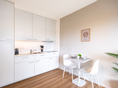 Le studio est situé au calme au premier étage avec ascenseur et se compose d'une entrée, d'une salle de bains avec douche et toilettes, d'un salon avec cuisine ouverte équipée, d'un canapé-lit pour 2 personnes. Balcon facilement accessible avec table et 2 chaises pour un petit-déjeuner agréable au soleil du matin ou un apéritif à l'extérieur avec vue sur le jardin arrière paisible. Il y a également un local à vélos au rez-de-chaussée.