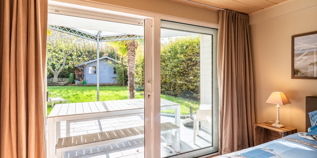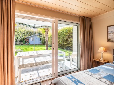 On this level, there is a terrace with a table, 8 chairs, and 6 sun loungers. From here, you can access the garden. In the garden shed at the back, there is an infrared cabin that you can use during your stay. There is also a table tennis table and new darts.