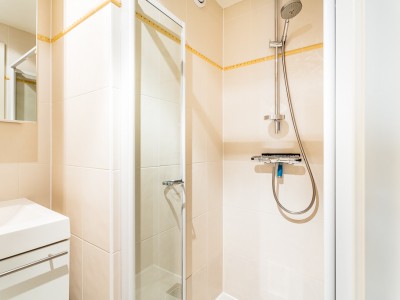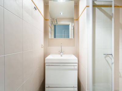 The apartment consists of a living room with sea view, open kitchen, shower room, a bedroom with double bed, a bedroom with bunk bed, double sofa bed in the living room.