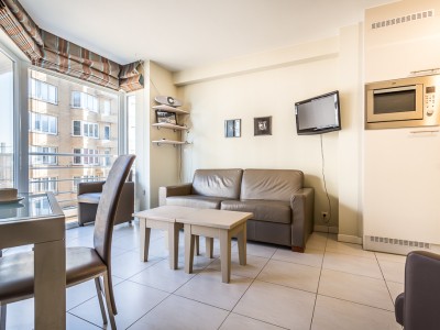 2 bedroom apartment with side sea view, 80m from the sea and near the center of Koksijde. Sunny terrace at the back of the apartment. Pets are not allowed.