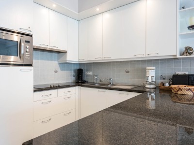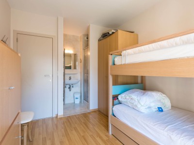 Cozy living room with open-plan kitchen. One bedroom with a double bed and one with a bunk bed for 3 people (2 below and 1 above). Bathroom with bathtub and separate shower in the bedroom. Separate toilet.