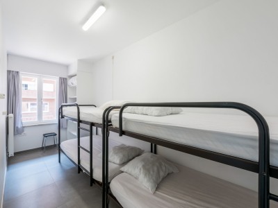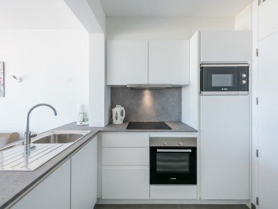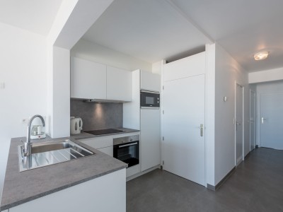 Hall, living room with beautiful sea view, open fully fitted kitchen, toilet, bathroom with walk-inn shower, bedroom with a double bed, bedroom with 2 bunk beds.