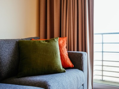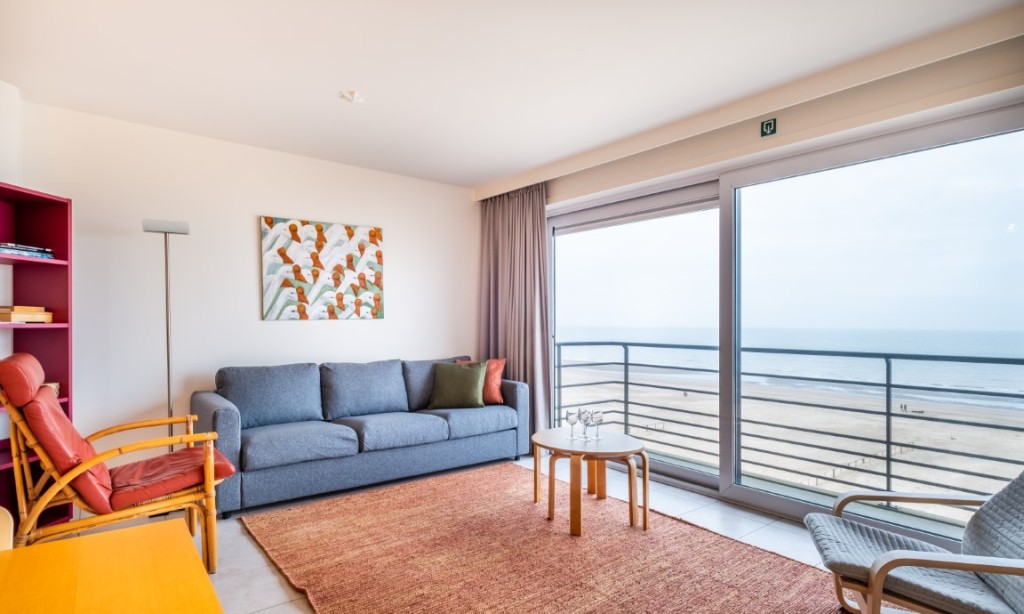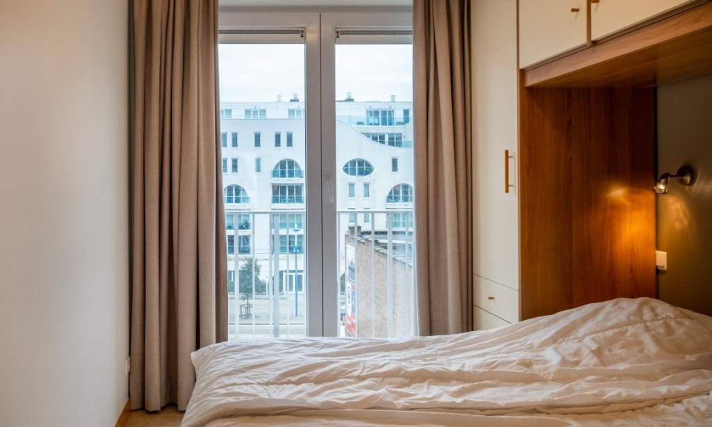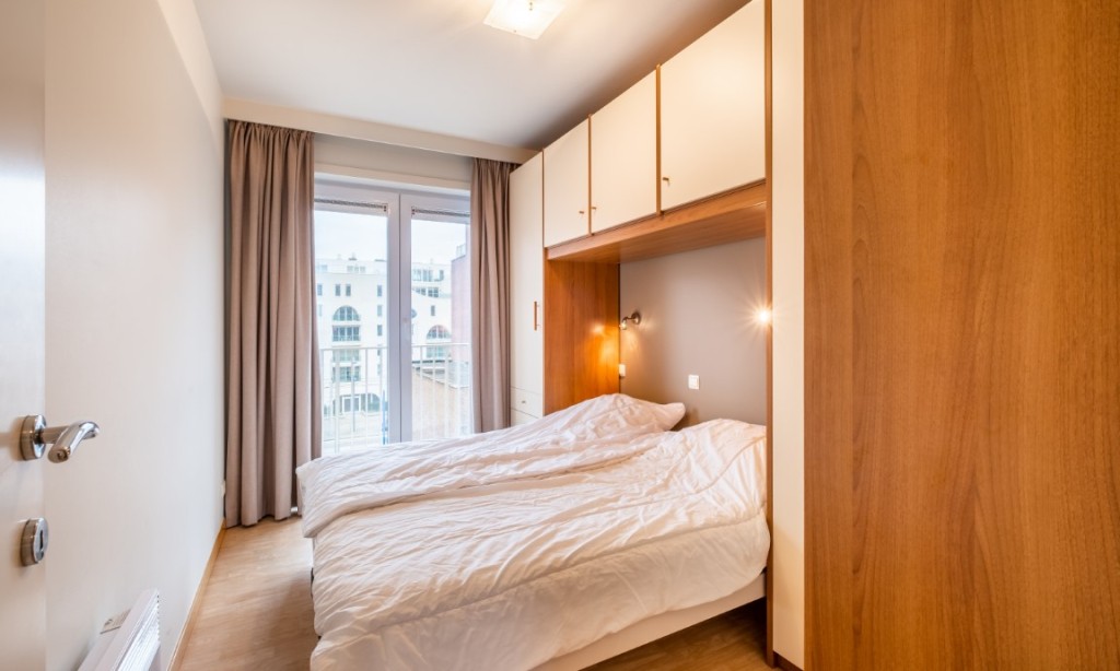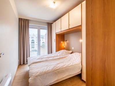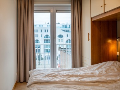 Spacious and modern apartment on the 4th floor with two bedrooms. Located on the seafront, within walking distance of the shopping center. Pets are allowed.