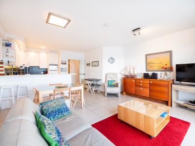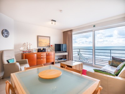 Modern 2 bedroom apartment on the 6th floor and seafront in Koksijde. In the apartment you have the entrance hall, living room with sea view and open fully equipped kitchen, digital TV, Wifi, 2 bedrooms, separate toilet, bathroom with bath, a bedroom with ensuite shower. Plan of the appartement can be found at the photos.