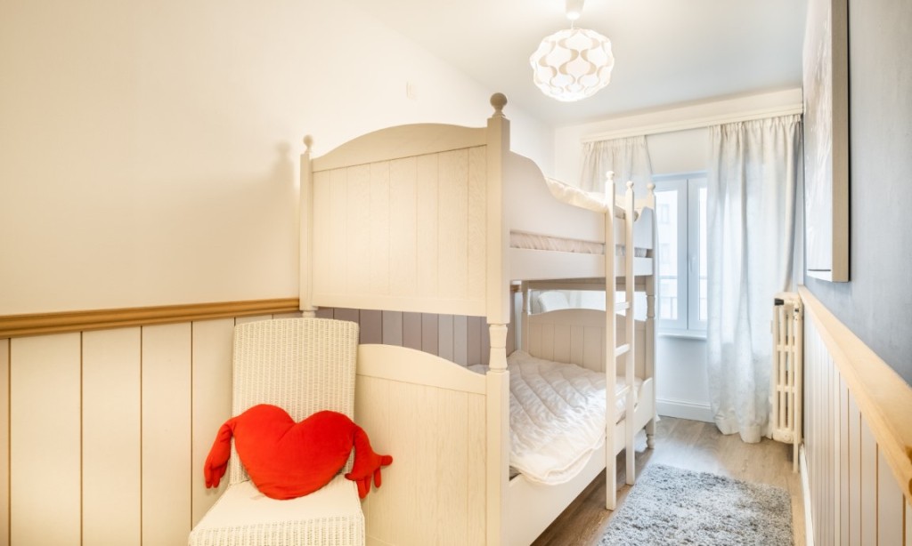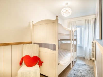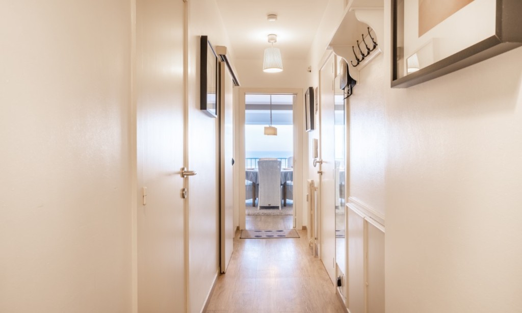 The apartment consists of a hall, toilet, bathroom with bath, equipped kitchen, living room with seaview, a bedroom with double bed, a bedroom with a bunkbed, digital tv and internet (wifi).