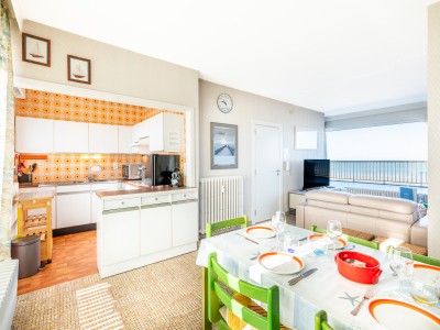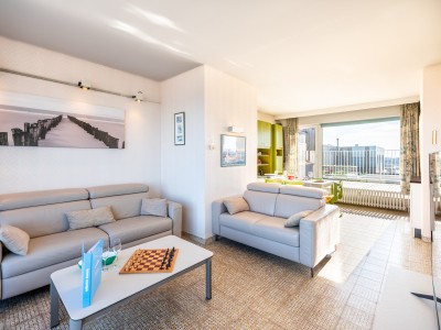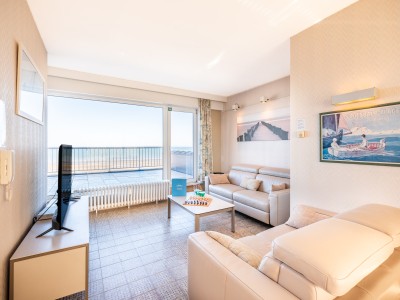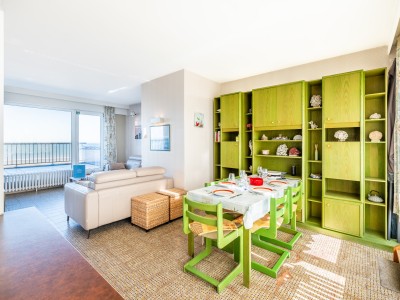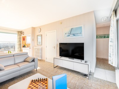 Penthouse with 2 bedrooms on the seafront. 2 large terraces. This apartment consists of a living room with sea view and access to the terrace, dining area and kitchen with access to the sun terrace at the rear. Bathroom with bath. Bedroom with double bed and bedroom with 2 single beds. Digital TV and Wi-Fi available. Pets allowed.