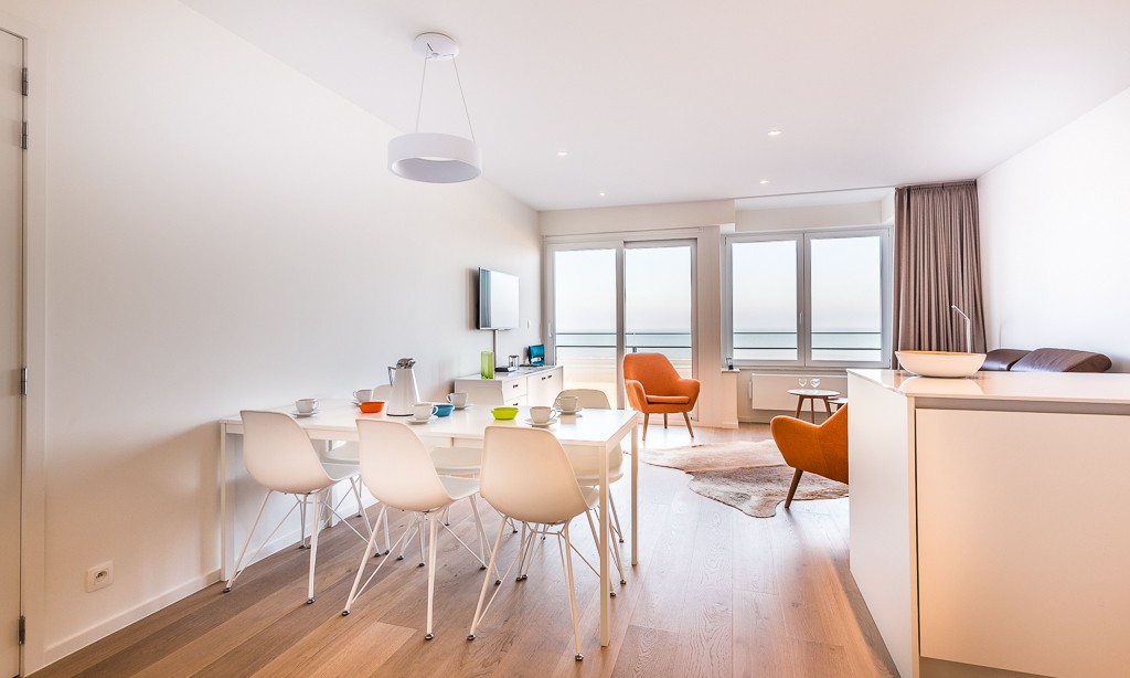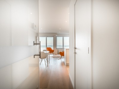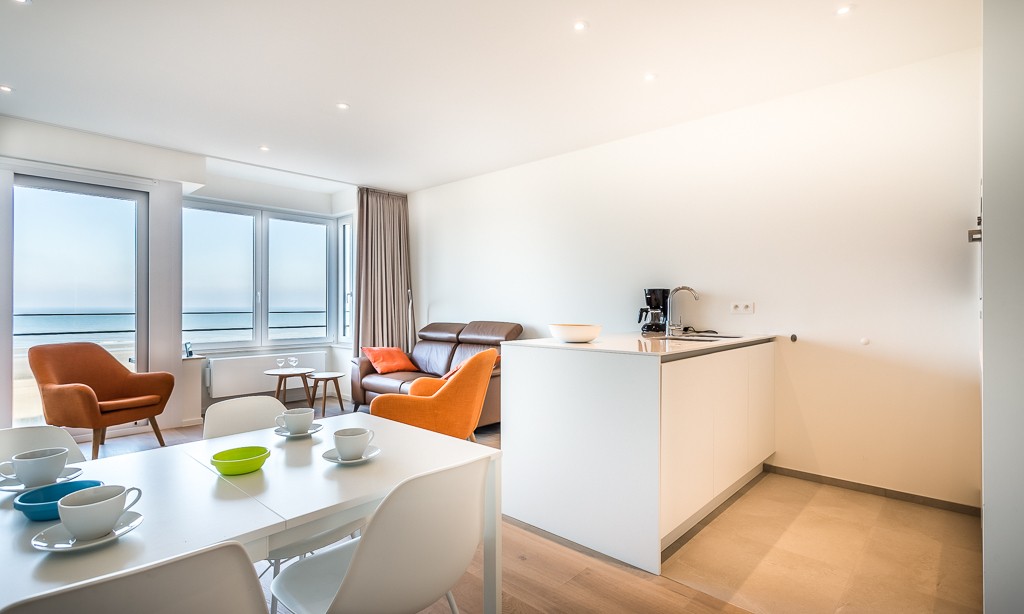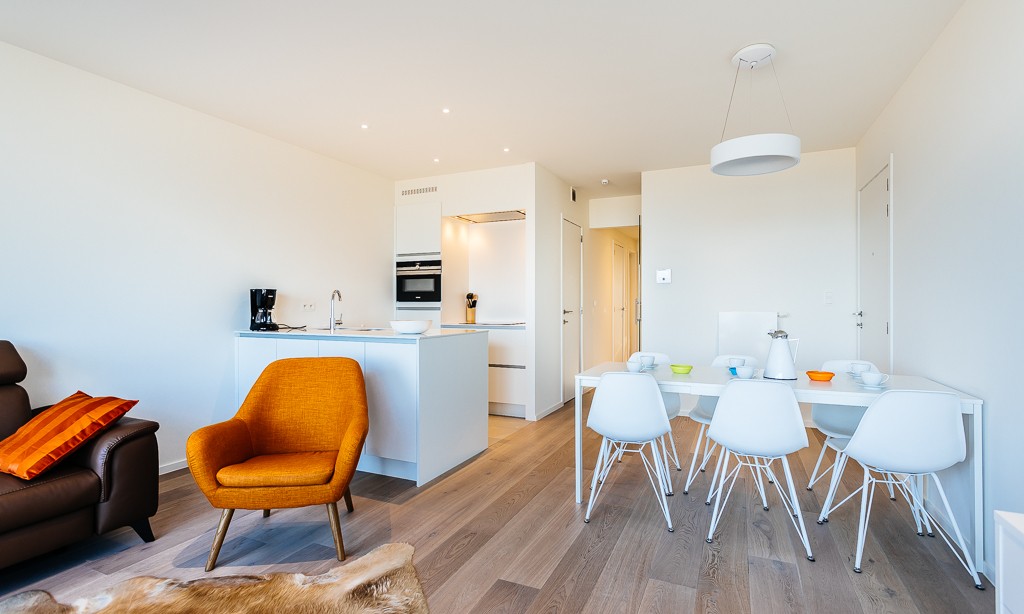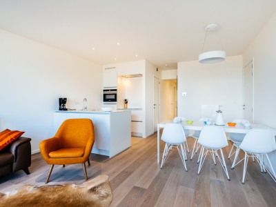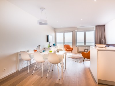 Modern luxury apartment on the seafront, near the dunes, on the 4th floor with an elevator. Spacious living room with frontal sea view. Fully equipped, modern style. No pets allowed.